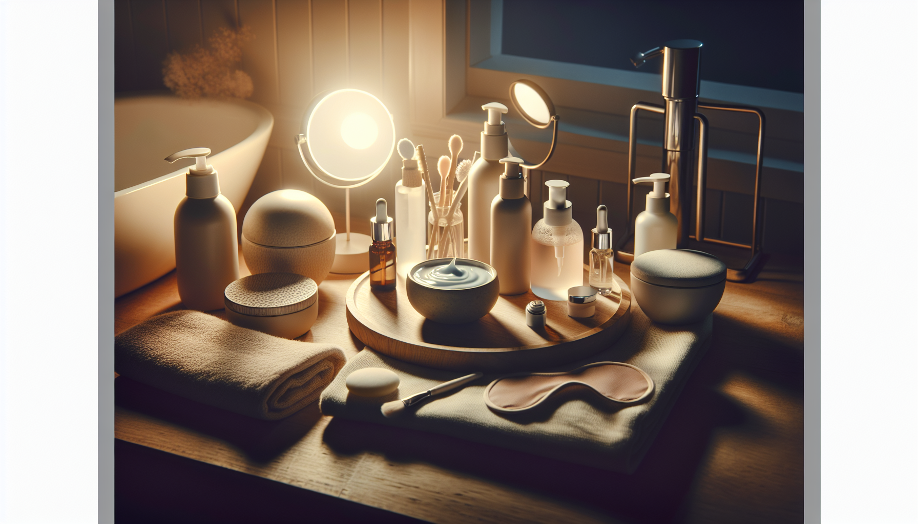 [Image placeholder: Simple nighttime skincare products arranged on bathroom counter]